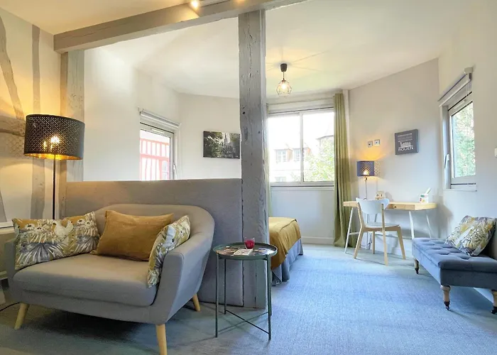 Daire Rouen şehrinin merkezine 5 dakikalık yürüme mesafesinde yer almaktadır. Bu konaklama birimi, Rouen Doğa Tarihi Müzesi'a 1 km uzaklıktadır. Tesise 150 metre mesafede yer alan ve gezonde mutfağı sunan La Petite Auberge mevcuttur. Musee Jeanne-d'Arc'a sadece birkaç metre uzaklıktadır.